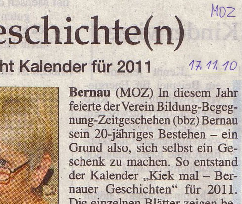 26. Lesung am 16.11.10 im Treff 23 in Bernau - aus dem Buch "Reflexionen" und dem Kalender "Kiek mal - Bernauer Geschichten" 2011 im Rahmen "20 Jahre bbz Bernau e.V.. |