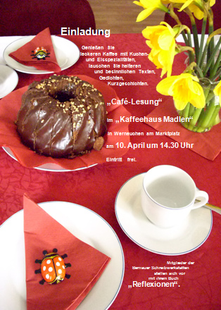 24. Café-Lesung "Reflexionen" in Kaffeehaus Madlen in Werneuchen am Marktplatz am 10.04.2010 |