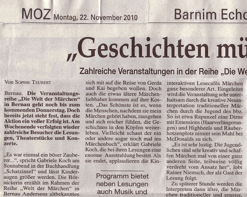 27. Lesung in der Galerie Bernau, Lesecafé im Rahmen der Veranstaltungsreihe "Die Welt der Märchen" am 20.11.2010 |
