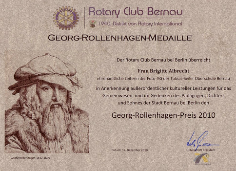 | 29. Georg-Rollenhagen-Preis 2010 als Leiterin der Foto-AG der "Tobias-Seiler-OS Bernau" am 17.12.2010 | |||||||||