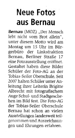 vom 19.09. bis 20.10.2015 Der Mensch lebt nicht vom Brot allein – mit Foto-AG im Bürgerbüro DIE LINKEN, Bernau |