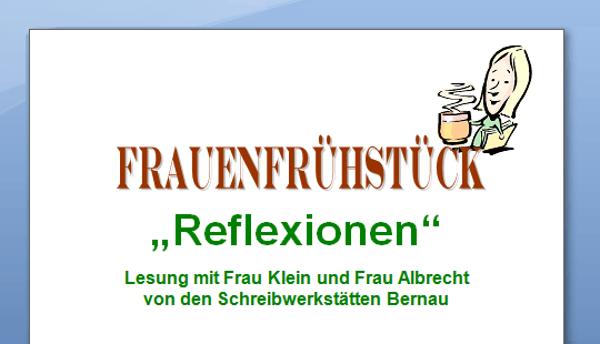 Frauenfrühstück (Lesung) REFLEXIONEN am 20.08.2008 im Frauenpunkt Courage e.V. in Berlin-Hohenschönhausen |