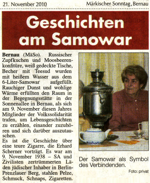 25. Lesung im Rahmen der Veranstaltung "Geschichten am Samowar" in der Begegnungsstätte der Volkssolidarität, Sonnenallee 2, Bernau-Süd am 09.11.2010 |