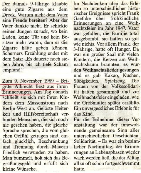 26. Lesung am 16.11.10 im Treff 23 in Bernau - aus dem Buch "Reflexionen" und dem Kalender "Kiek mal - Bernauer Geschichten" 2011 im Rahmen "20 Jahre bbz Bernau e.V.. |