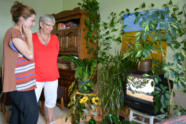 „Über-Lebens-Umstände“, Audio-Video-Installation, TV-Monitor, Pflanzen,