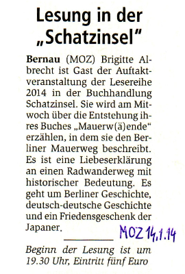 in der Buchhandlung "Schatzinsel" in Bernau, am 18.1.2014