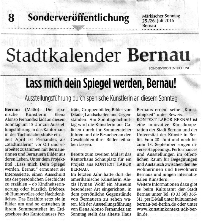 vom 20.06. bis 13.09.2015 Lass mich Dein Spiegel werden, Bernau |