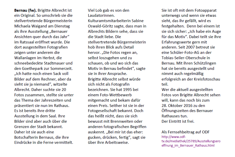 April 2014 zeigte ich im Ratssaal Bernau eine Fotoschau mit